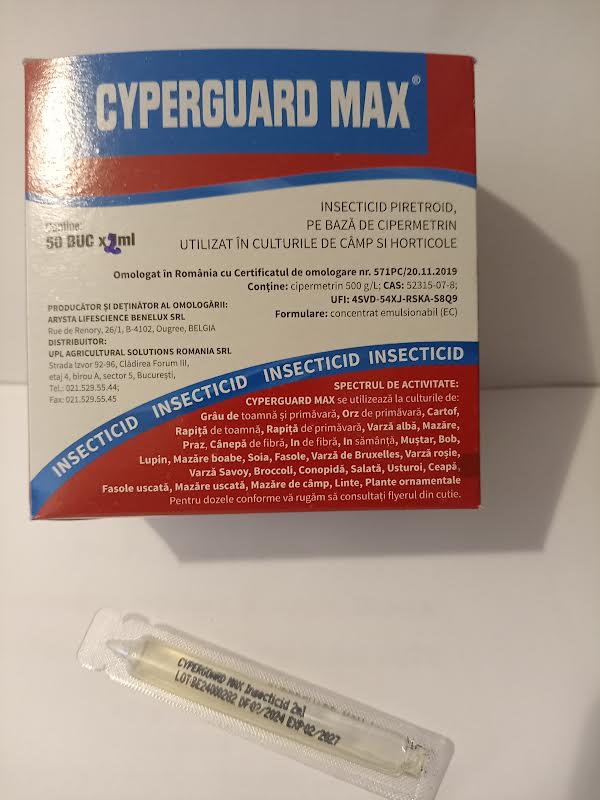 CYPERGUARD MAX este un insecticid piretroid, pe bază de cipermetrin utilizat în culturile de câmp şi horticole.