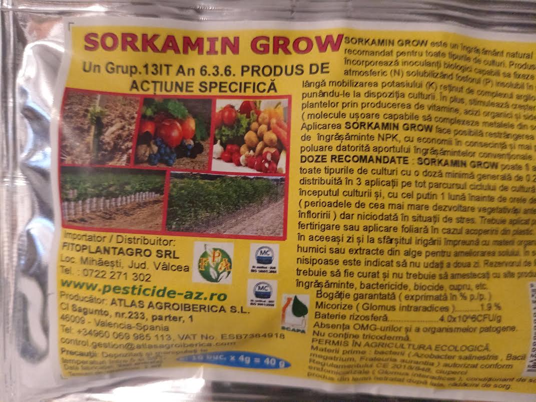 DOZE RECOMANDATE : SORKAMIN GROW poate fi aplicat la toate tipurile de culturi cu o doză minimă generală de 0.25 Kg/ha,