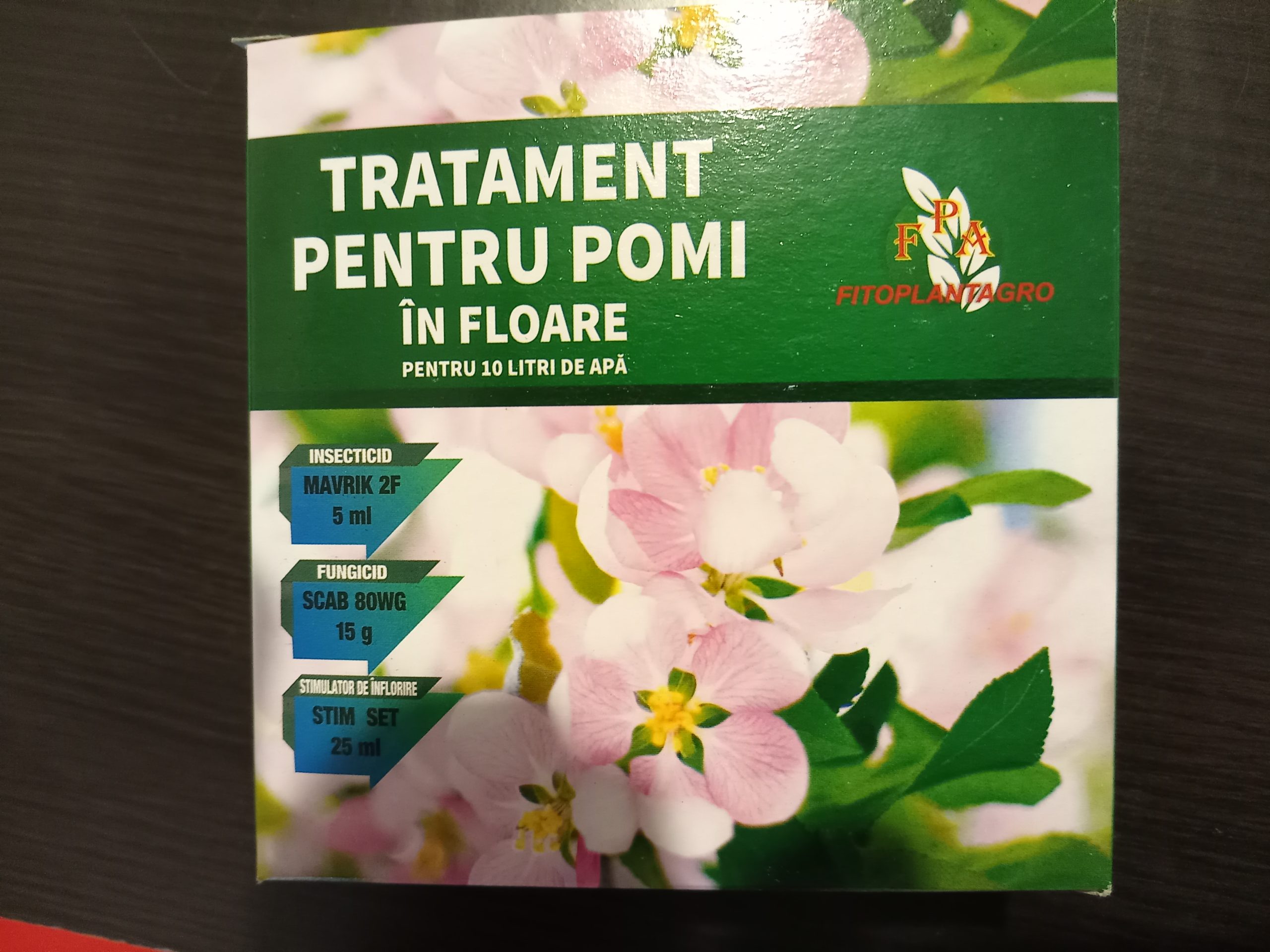 Pachetul contine dozajul pentru 10 litri de apă, pentru efectuarea tratamentului pentru pomi în floare.